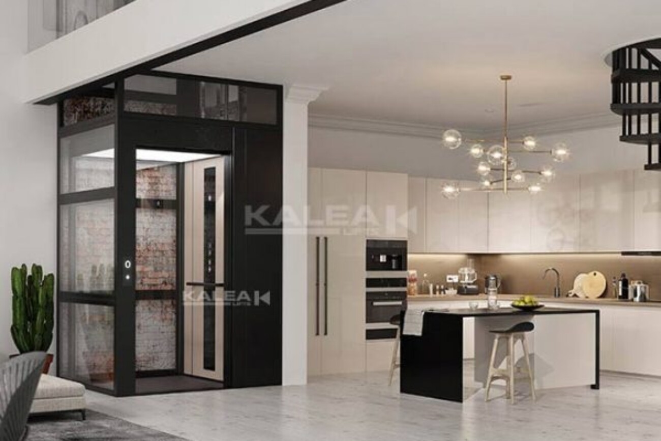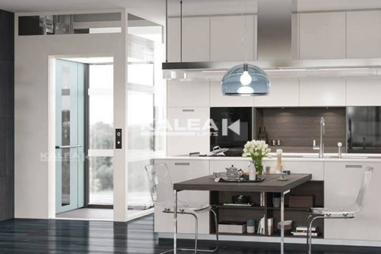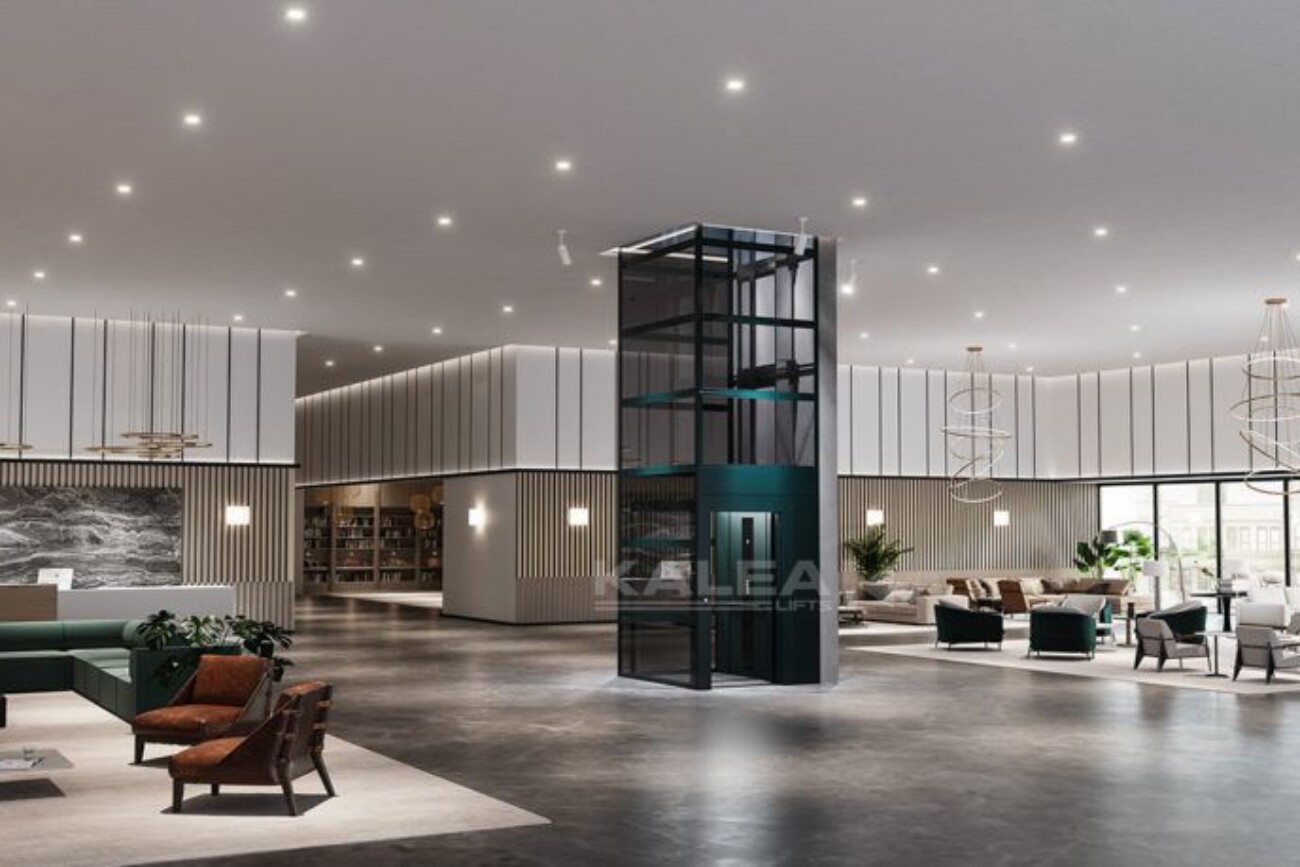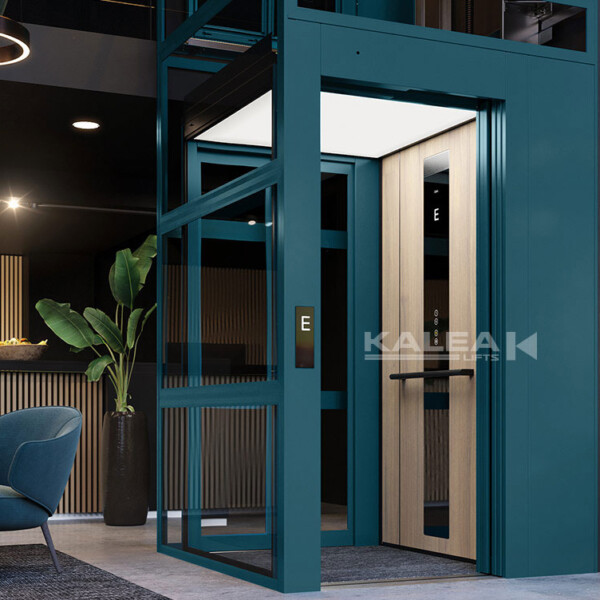 No self-contained shaft and does not require a separate machine room